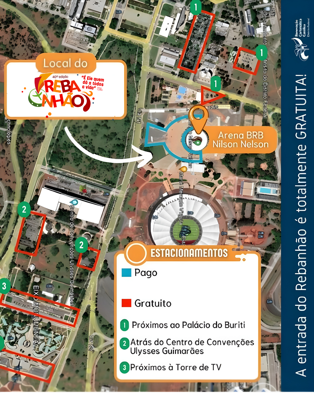 Nossa 40ª edição do REBANHÃO será na Arena BRB Nilson Nelson, Ginásio em Brasília, Distrito Federal. Estamos prontos para receber cerca de 7.000 (sete mil) fiéis de nossa arquidiocese e contaremos com algumas atrações como: Padre Eduardo José, Diocese de Itumbiara/GO, Padre Carlos Alexandre, Klaus Newman, Presidente da RCCBRASIL, Antônio Alves, Filhos do Rei e muito mais!